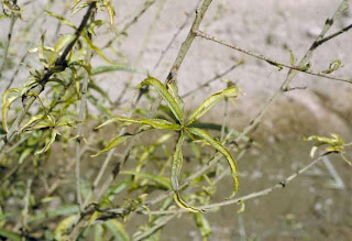 kadang-kadang berubah chlorotis (kuning-kuning). Pembentukan buah jelek, dan pertumbuhan tanaman kerdil.
